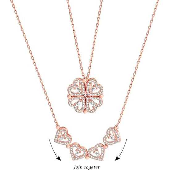 Celebrate love and luck with the 2-in-1 Clover Heart Magnetic Necklace for Women and Girls — a unique, versatile piece that transforms with a twist. Wear it as a sparkling four-leaf clover necklace for good fortune, or shift it into four heart pendants, symbolizing love, friendship, and connection.