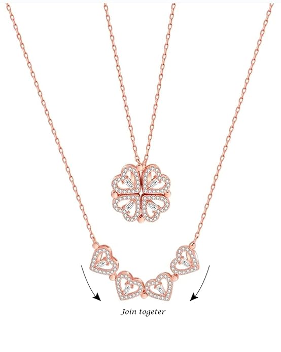 - 2-in-1 magnetic necklace: transforms from four-leaf clover to heart pendant